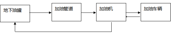 加油工藝:加油作業(yè)時,采用潛油泵提供的動力,油品通過加油管道至加油機(jī),進(jìn)入受油容器。同時,加汽油作業(yè)時,有油氣回收回收系統(tǒng),汽油蒸汽通過油氣回收管道回至汽油罐。具體流程見下圖: